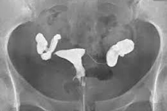 膣鏡で膣を開き、造影剤注射器を子宮頸部に固定して造影剤を子宮腔内に入れます。2本の子宮卵管が正常ならば造影剤は子宮腔から2本の子宮卵管を通り骨盤腔に流れ込みます。X線撮影により造影剤が骨盤腔に流れたかがわかります。検査過程は約10分です。