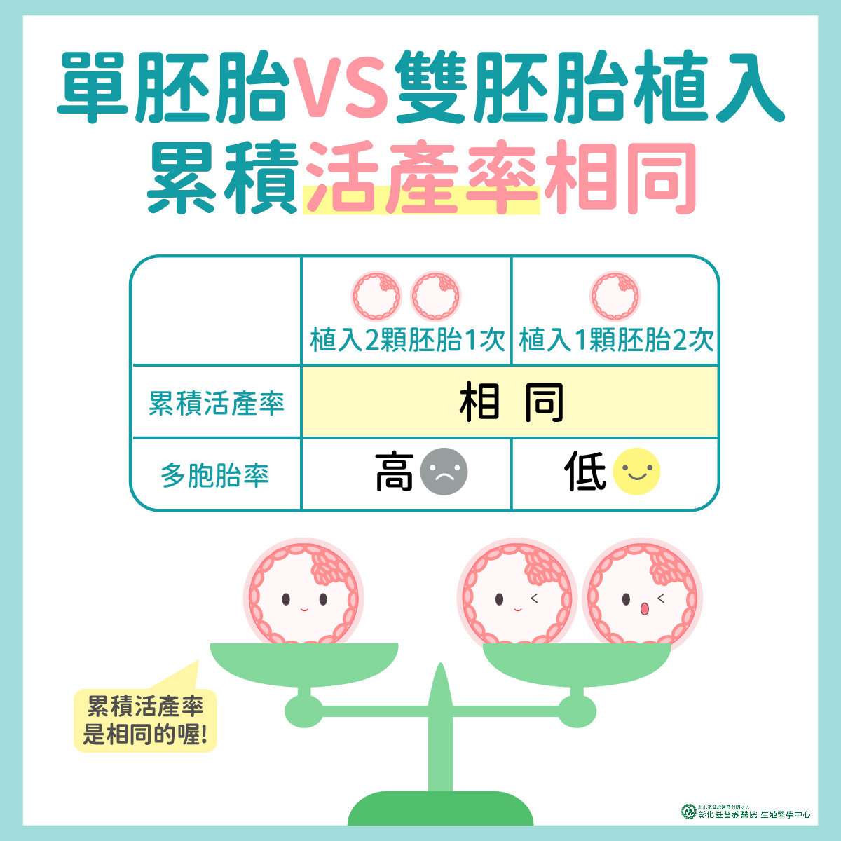 單胚胎VS雙胚胎植入 累積活產率相同...