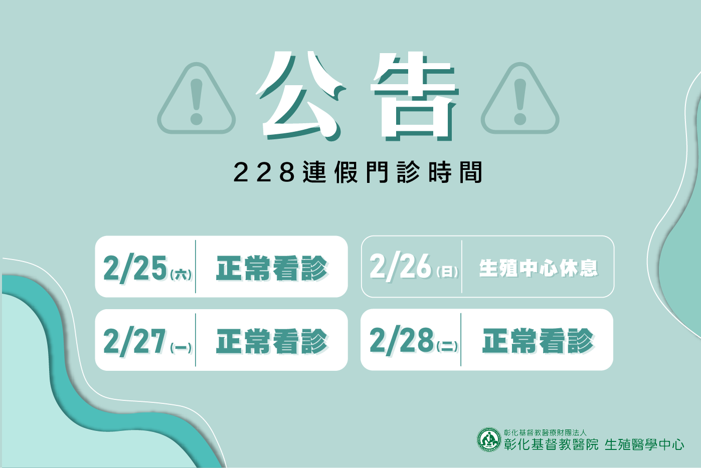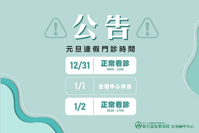 二二八連假,生殖醫學中心正常看診...