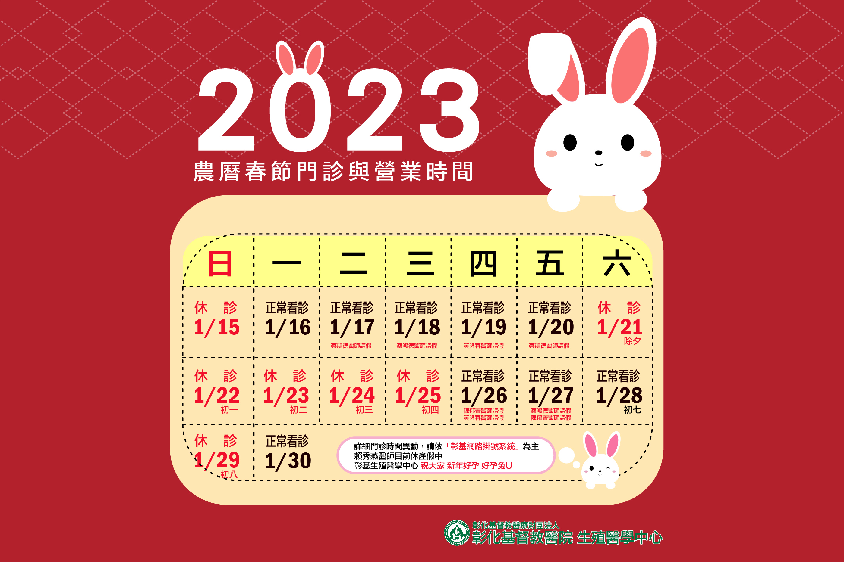 2023農曆春節門診時間公告...