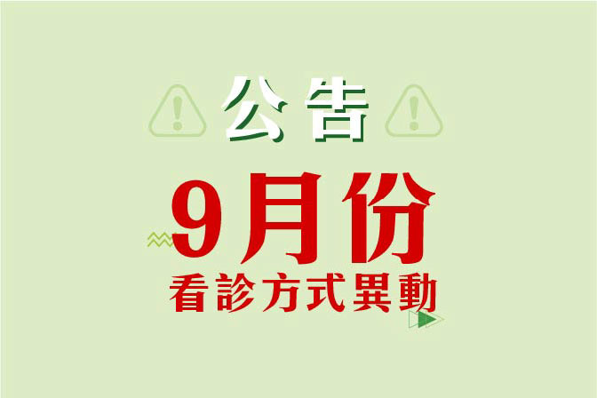 自109.9月起,蔡鴻德醫師看診方式更改如下...
