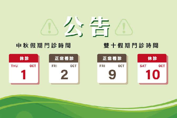 ★9/26(六)生殖醫學中心服務時間維持08:00~12:00★10......