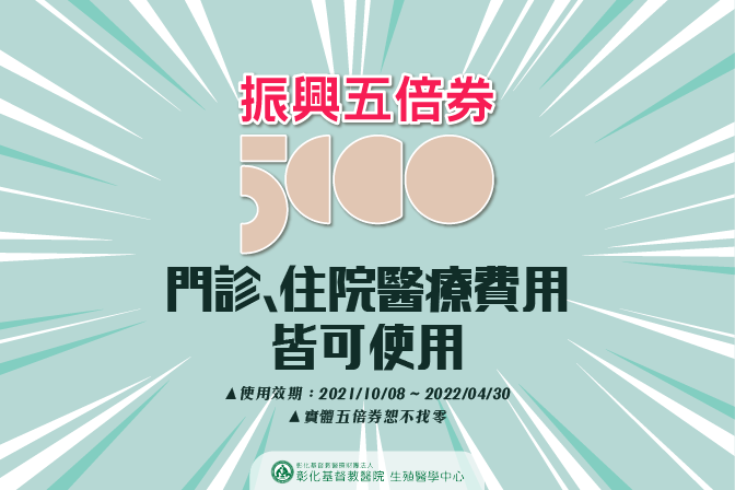 2021/10/8 起,開放使用五倍券繳交門診、住院醫療費用,包含生殖醫學中心各......