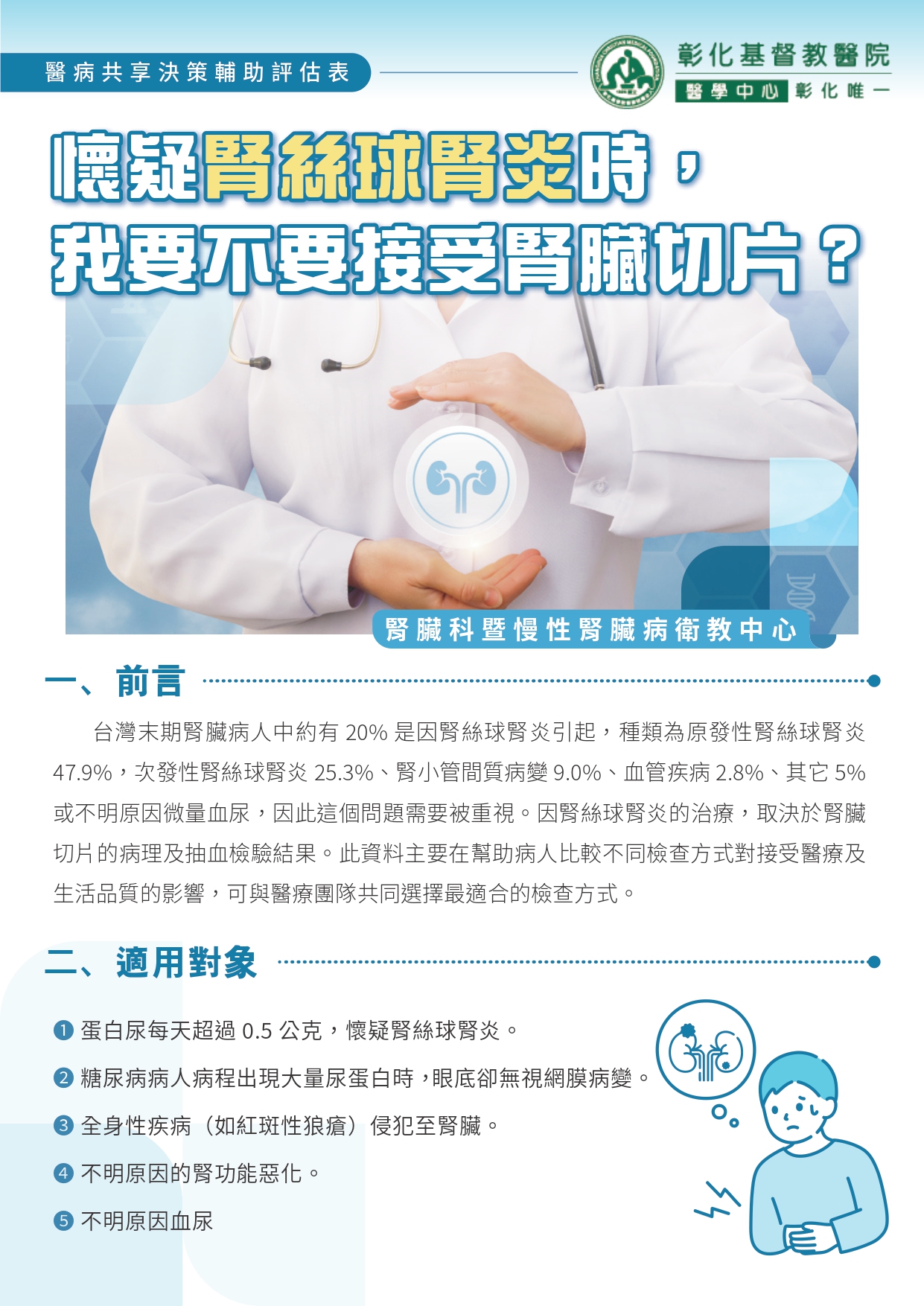 懷疑腎絲球腎炎時, 我要不要接受腎臟切片 ?