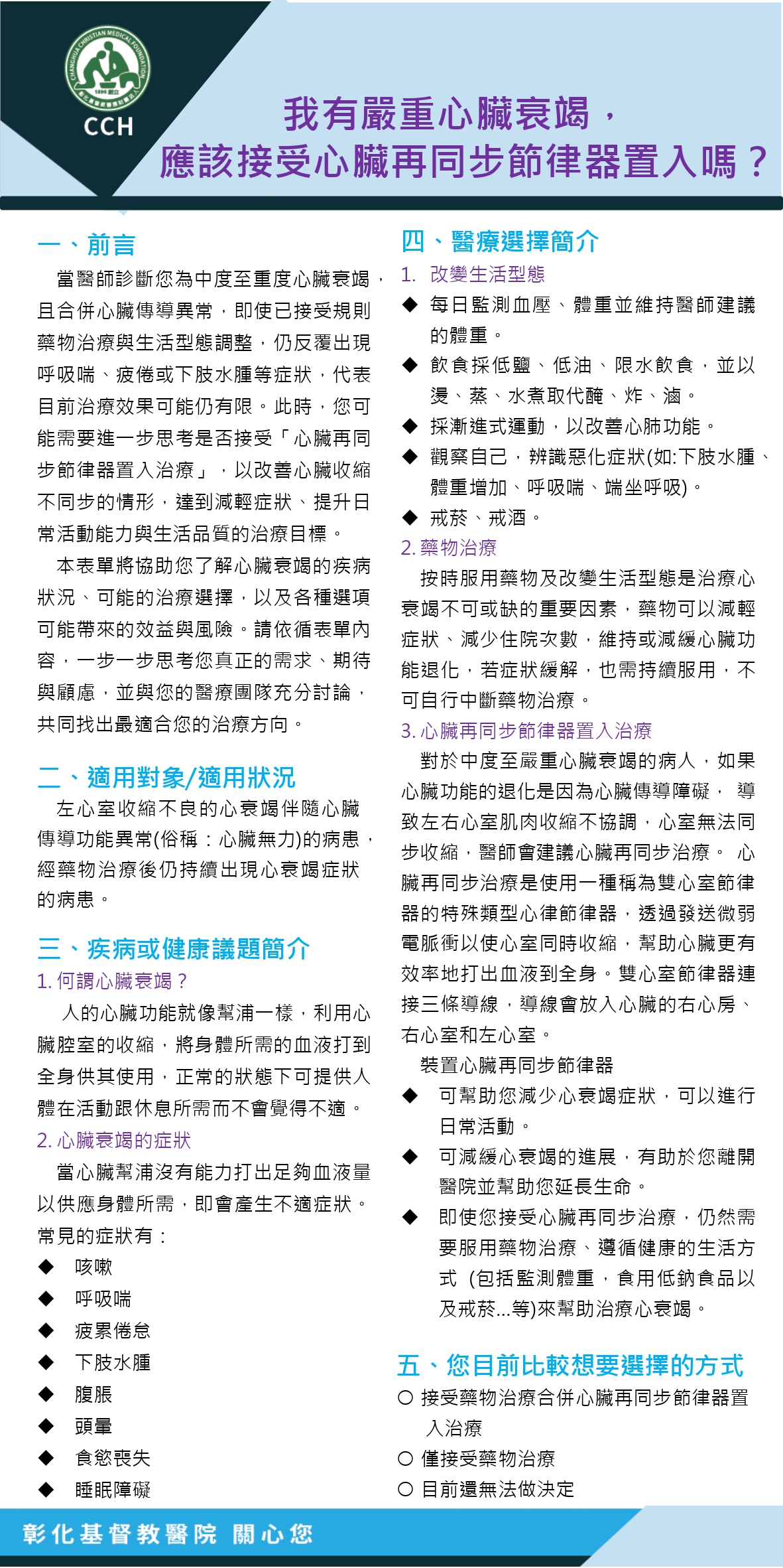 我有嚴重心臟衰竭:我應該接受心臟再同步節律器置入嗎?