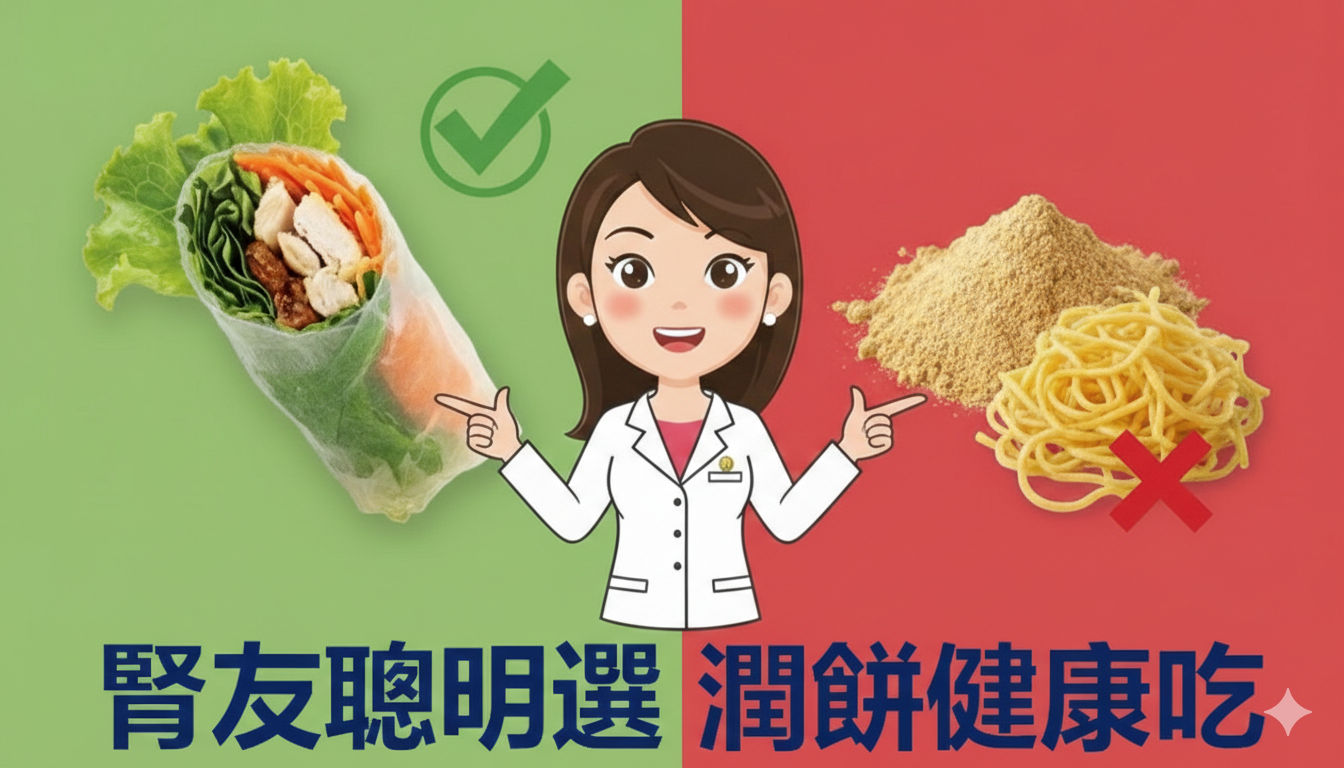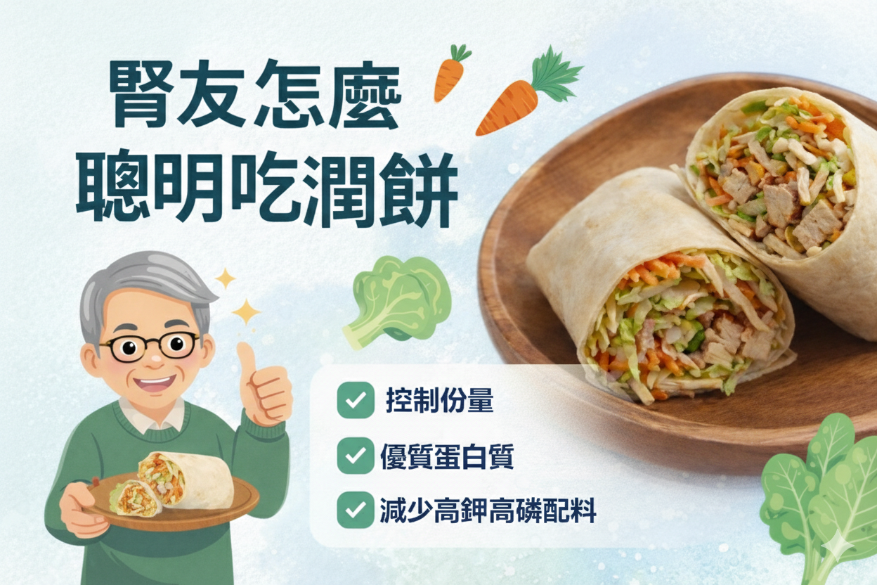 清明節想吃潤餅,卻擔心磷鉀過高?其實只要選對食材、改個做法,腎友也能與家人享受一樣的美味!本影片由腎臟科醫療團隊拆解潤餅的「四大地雷」,從蛋...