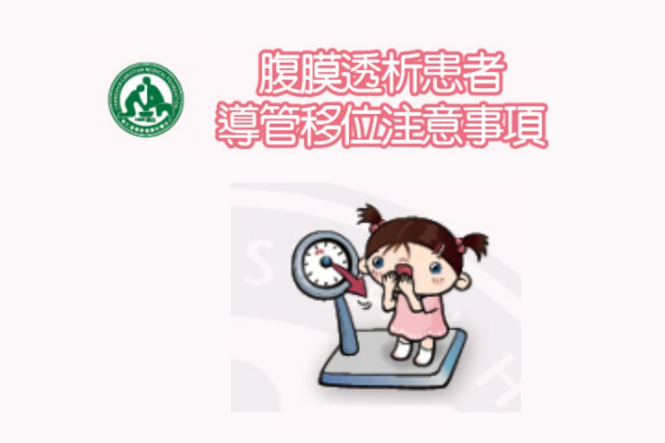 正常情況下,腹膜透析液注入時間約需要5至10分鐘。引流時間約需要10至20分鐘。若導管移位,則可能發生水腫、毒素上升、嚴重時造成呼吸喘或透析...
