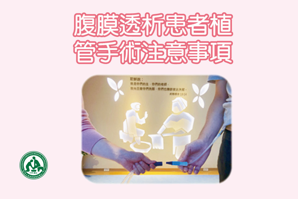 它需利用外科手術將一條腹膜透析專用的導管由腹壁植入腹腔中,大約10-14天後傷口癒合後拆線。手術一周後即可少量灌液,再慢慢增加。