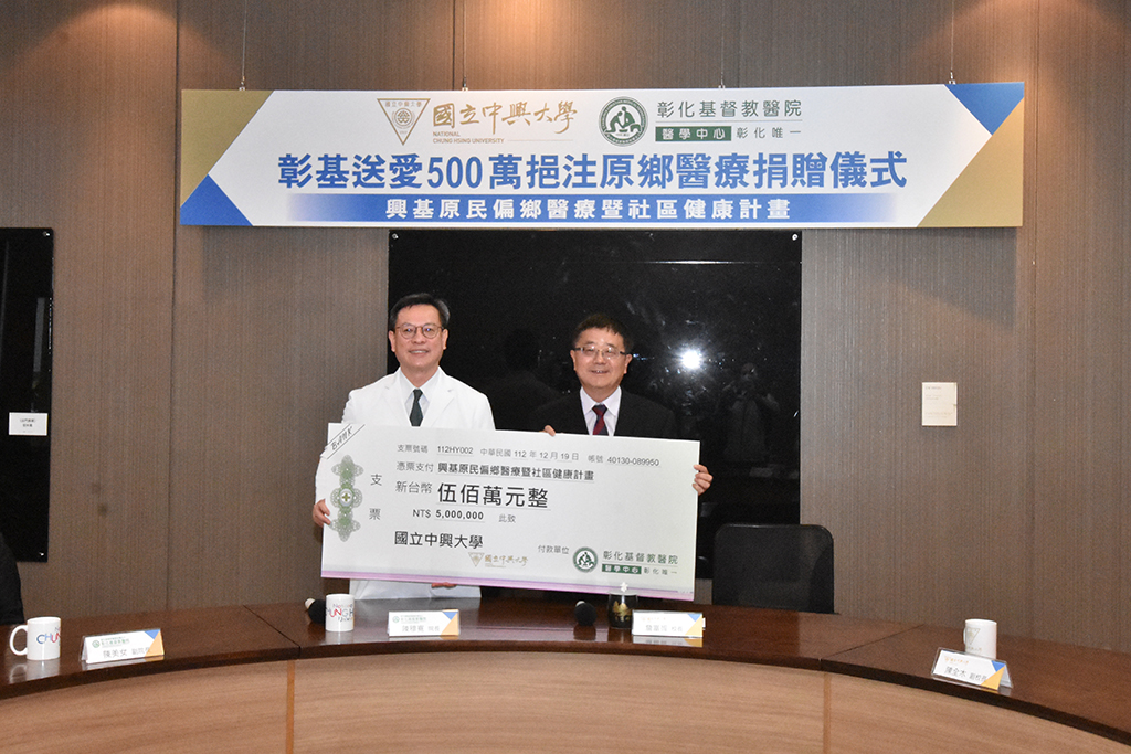 彰基醫學中心捐贈中興大學 500 萬元,支持偏鄉和原鄉健康事務,以「服務弱勢與偏鄉」的初心,培育服務偏鄉醫師。