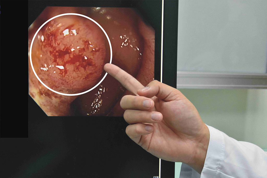 黃阿嬤2021年因排便出血與解便困難而就醫,經大腸鏡檢查後發現4.5公分腫瘤。