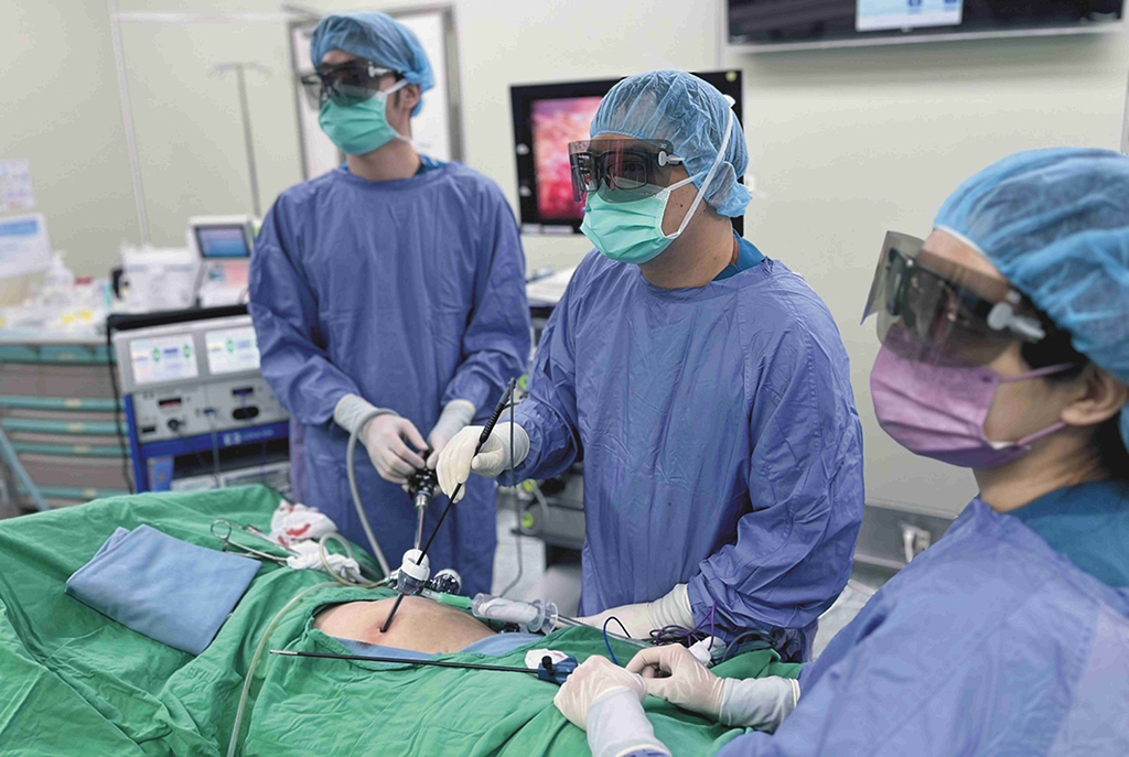 劉佑碩醫師(圖中)為患者進行大腸直腸癌手術。(情鏡畫面/非當事人)