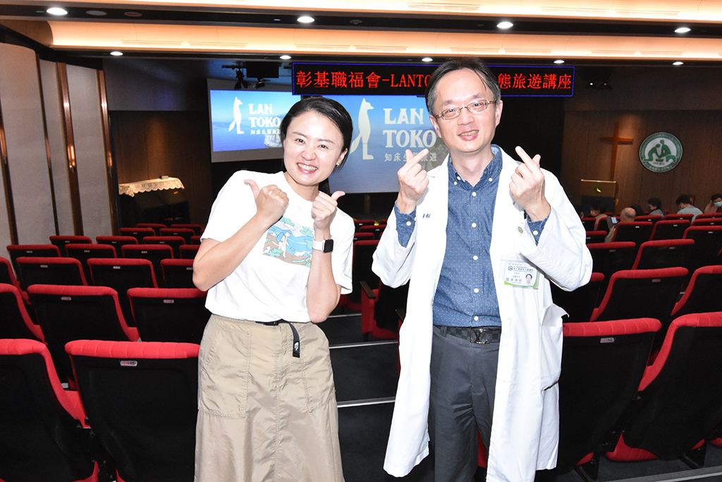 張通銘主任(圖右)參加藍醬(圖左)知床五湖生動有趣的導覽,決定邀請藍醬到彰基分享「LANTOKO知床生態旅行」。