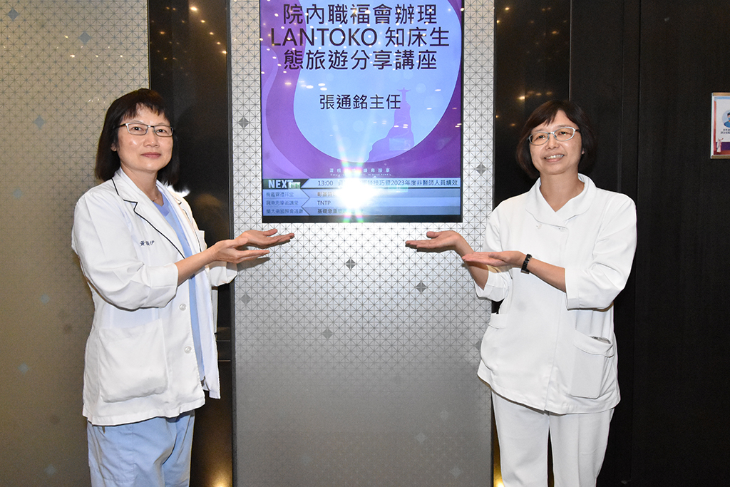 蕭惠祝主任(圖右)表示,感謝陳穆寬總院長對護理人員的支持,及主辦單位貼心維護護理人員的身心靈平衡。