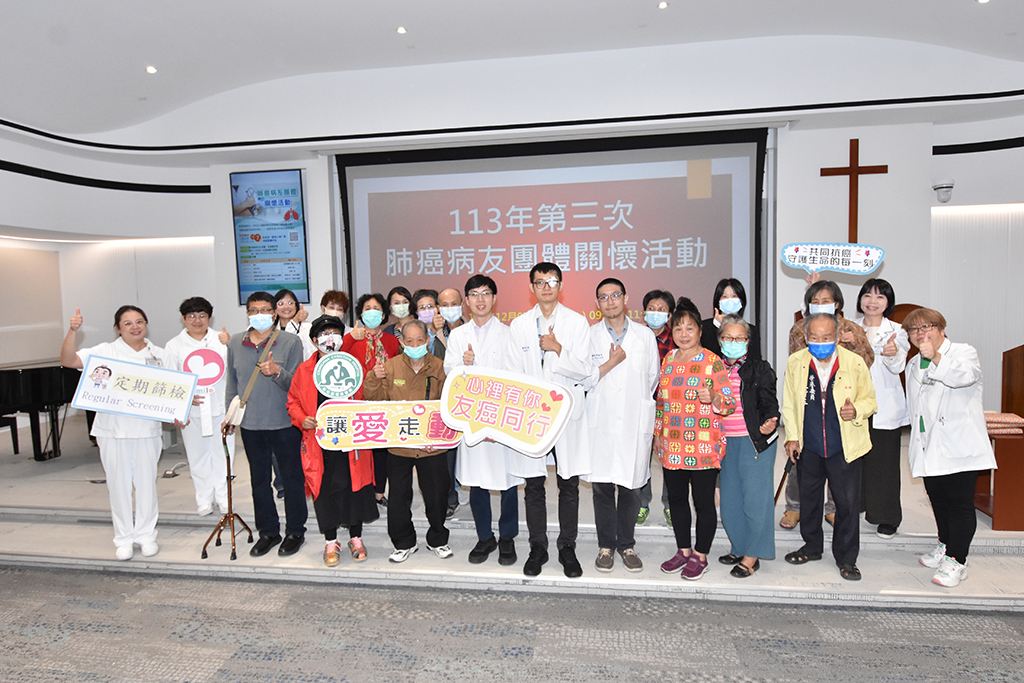 彰基醫學中心為守護每一位肺部疾病患者的健康,7日舉辦肺癌病友關懷活動,希望藉由活動,促進病友們相互支持,分享治療和日常生活管理的經驗,透過胸腔內、外科醫師進行健康講座,讓病友更細緻瞭解肺癌治療。