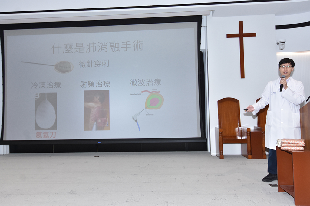 鄭雅夫醫師進行「腫瘤治療新選項~腫瘤消融術」健康講座。