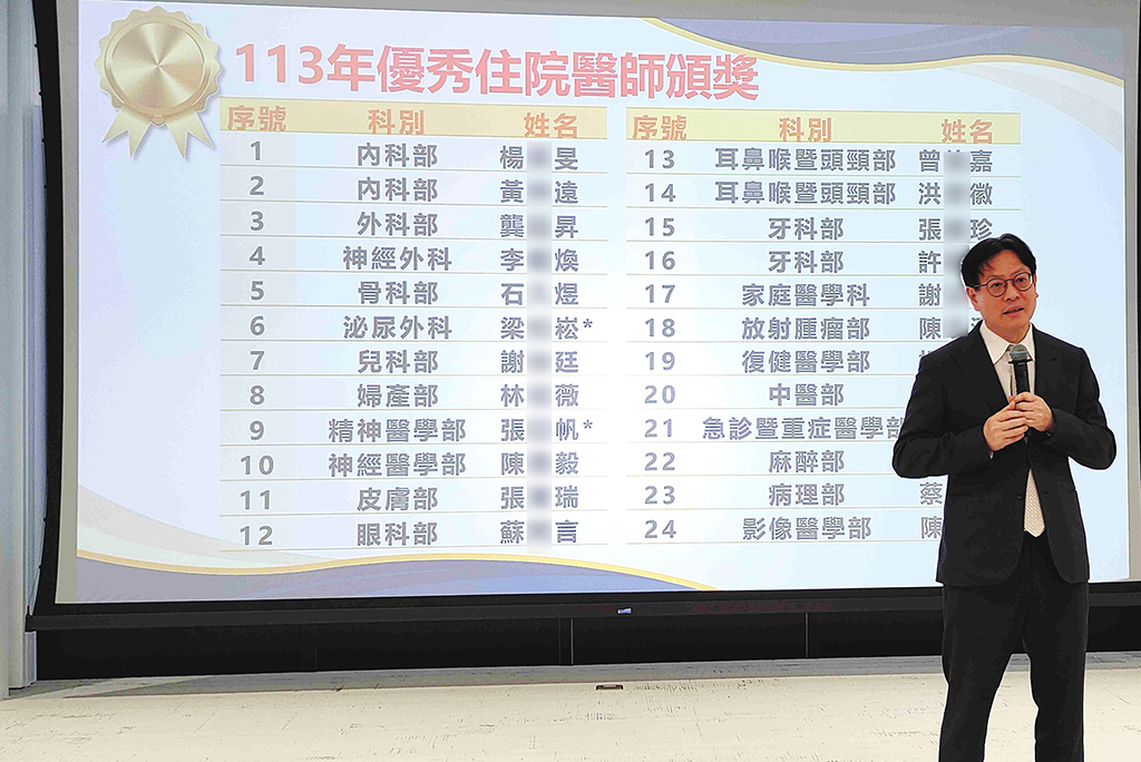 彰基在「優秀住院醫師頒獎活動」,表揚 24 位表現卓越的住院醫師。