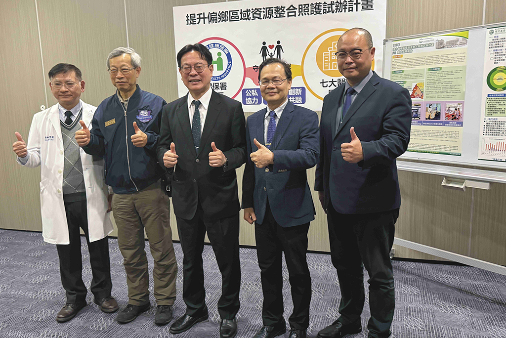 R3計畫成功提升急診治療率、擴大慢性病管理服務、發展遠距醫療,並提高病患滿意度。(左起:二林基督教醫院院長詹賜貳、彰化縣衛生局局長葉彥伯、彰基醫學中心總院長陳穆寬、健保署中區業務組組長丁增輝、南投基督教醫院院長張尚文)