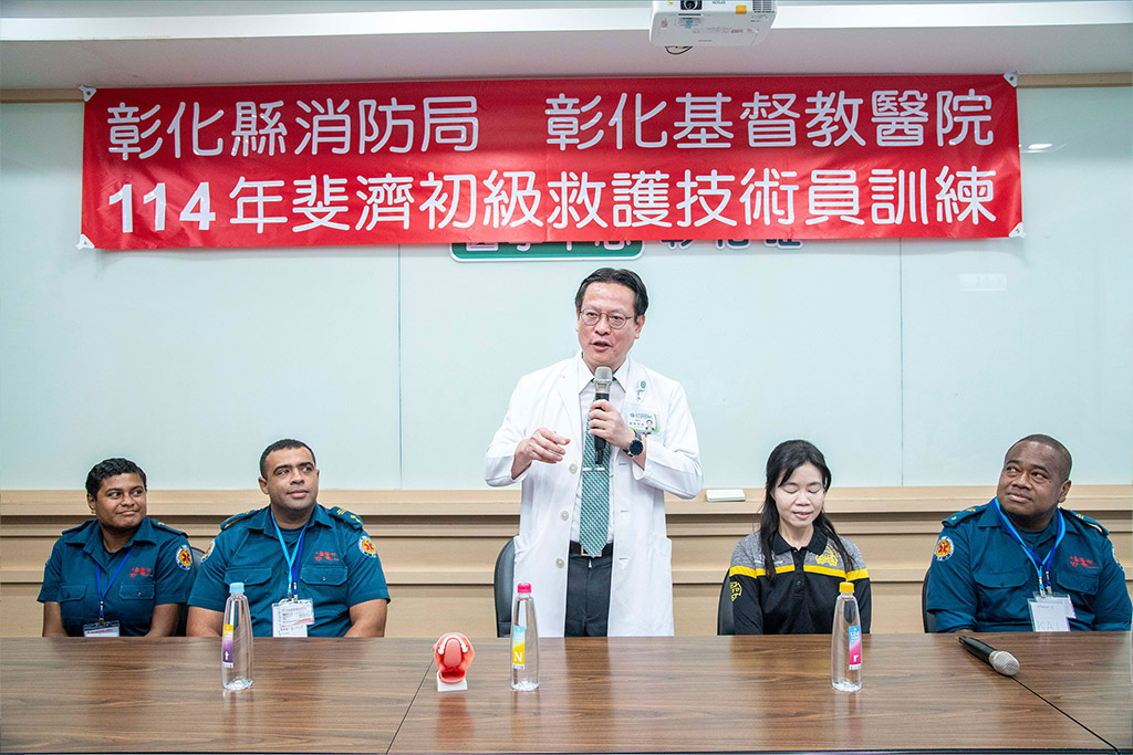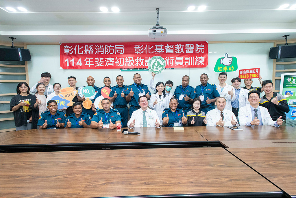 為協助南太平洋島國斐濟建立初級急救能力,彰基醫學中心攜手彰化縣消防局,共同協辦「114年度斐濟初級救護員技術訓練」。
