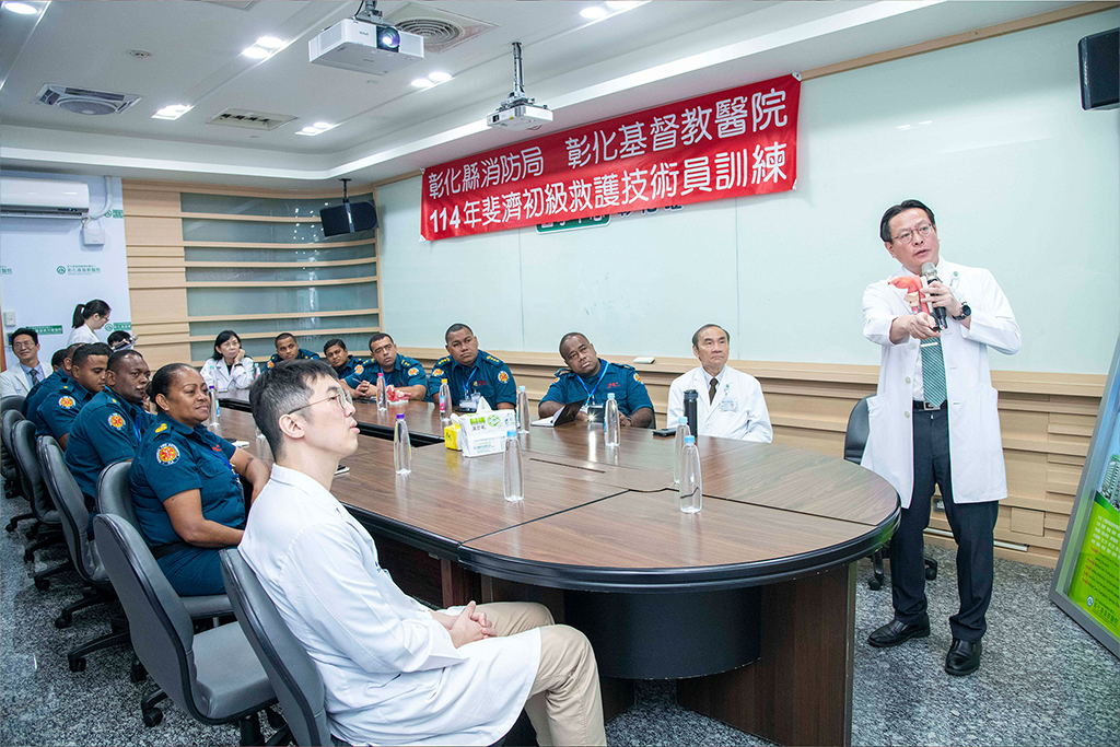 彰基攜手彰縣消防局於114年4月下旬舉辦斐濟首批救護員訓練,總院長陳穆寬教授親自歡迎斐濟學員並投入授課。