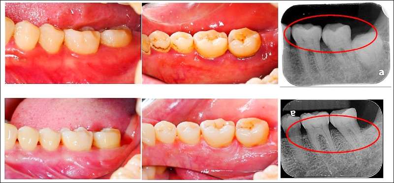 ▲患者經過牙周治療後(下排為治療後),口腔清潔能力改善。