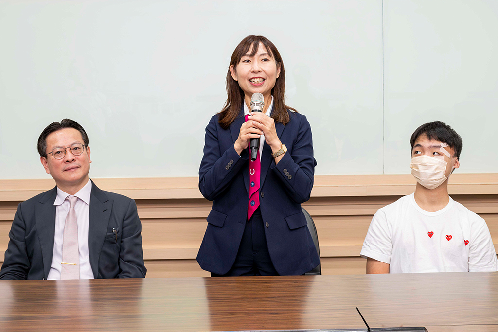 最後,顏爸爸感性地說:今天能再次來到這裡,心情十分激動。半年前的此刻,我同樣從台北開車南下,但那時是懷著焦急與不安;而今天,我帶著滿心的感恩與喜悅而來。感謝彰基在第一時間全力搶救,讓我的孩子能從生死邊緣被救回,重獲新生。這一路上,我深深感受到上帝的帶領與恩典,也感謝醫療團隊的專業與愛心,讓我們一家重新看見希望。顏爸爸進一步表示,顏同學在復健與學習過程中展現出堅強的意志與正面的態度,雖然過程中難免有低潮,但我們相信上帝一直在陪伴、引導他前行。相信在未來的日子裡,主必定會大大使用他,讓他的生命成為更多人的祝福。