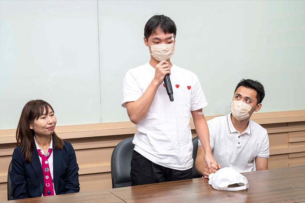 顏同學感恩彰基醫護搶救生命,並感謝家人、校長與導師陪伴支持,讓他重獲希望與勇氣,迎接美好未來。