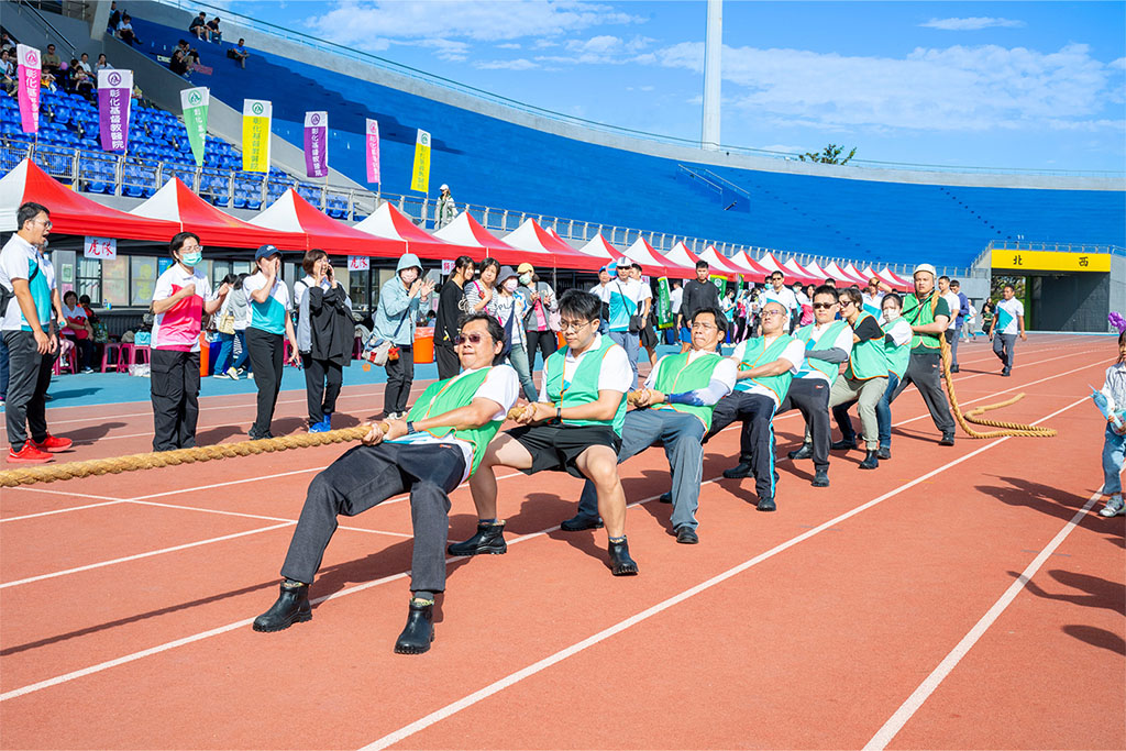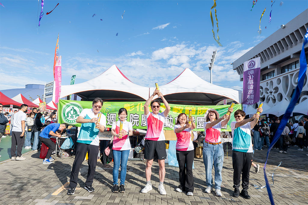 現場在董事會與總院長率領主管級幹部進行「彰基領航」健走後,園遊會熱鬧開張,各式美食與創意攤位吸引大批同仁與家屬參與。運動賽事更是高潮迭起,包括拔河、大隊接力及多項趣味競賽,現場加油聲震耳欲聾,參賽隊伍全力以赴,展現團隊合作與凝聚力。下午總院長親自抽出歐洲雙人來回機票等大獎後在院牧部代主任肯當·迪洛安牧師禱告後圓滿落幕。