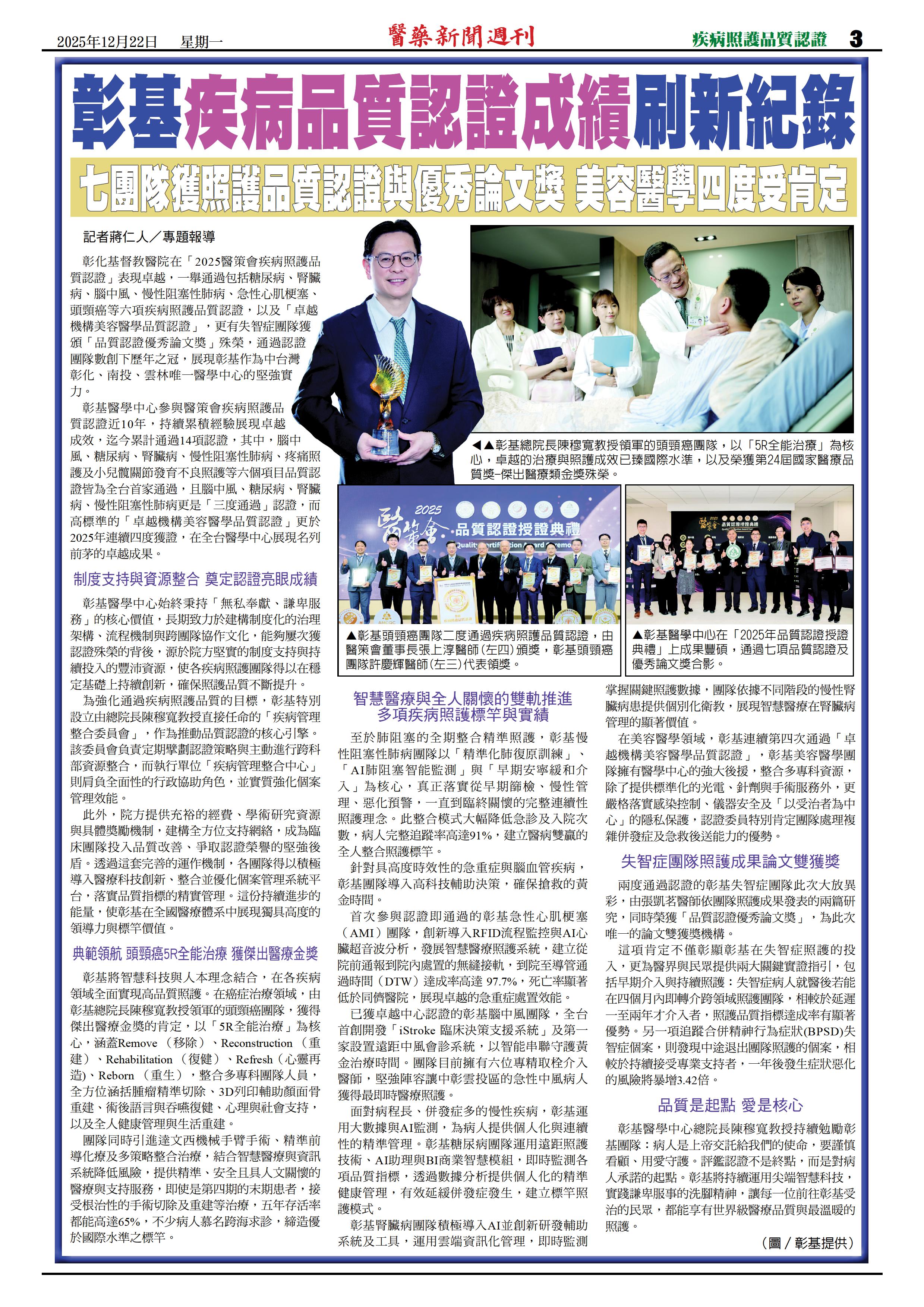 【轉載】彰基疾病品質認證成績刷新紀錄 7團隊獲品質認證及優秀論文 美容醫學四度受肯定