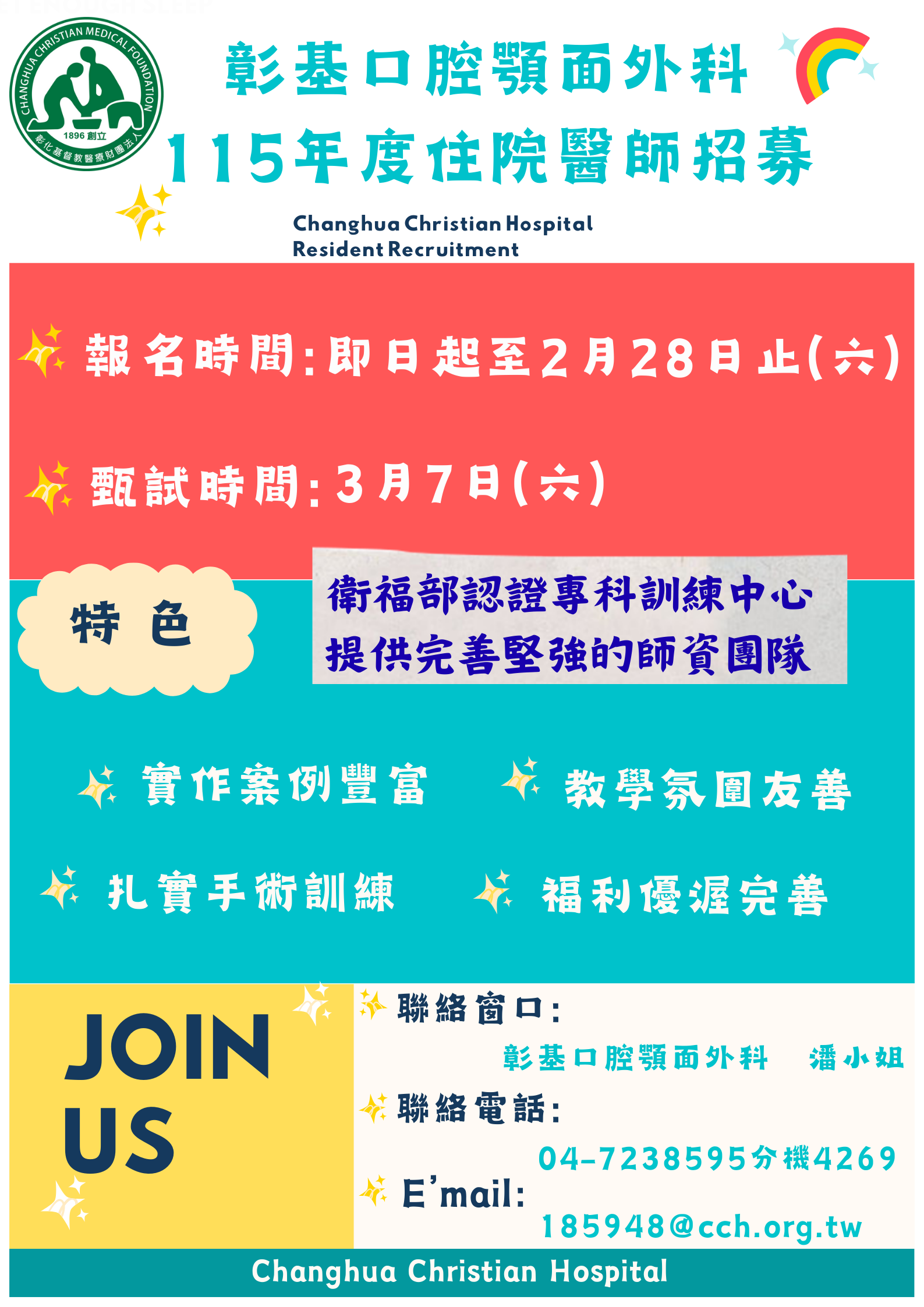 三、聯絡方式: 彰化基督教醫院口腔顎面外科 潘小姐