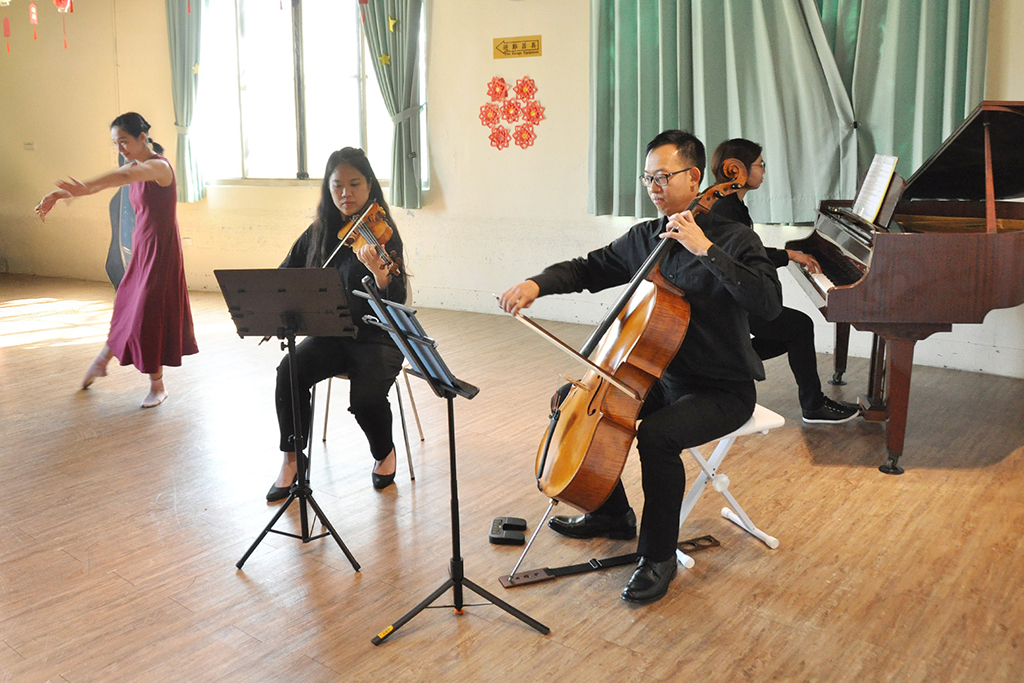 鋼琴與大提琴交織合奏,悠揚旋律溫柔撫慰長輩的心。