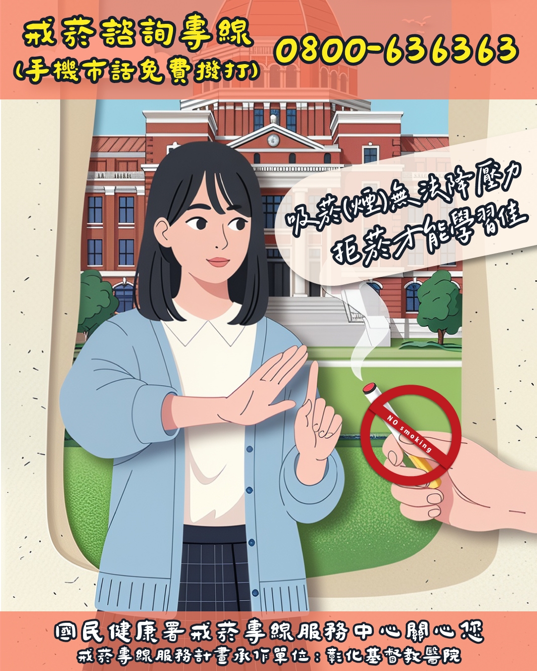吸菸(煙)真的無法紓壓! 拒菸,才能讓專注力與學習力 UP UP ♥♥需要幫助?戒菸諮詢專線 0800-636363