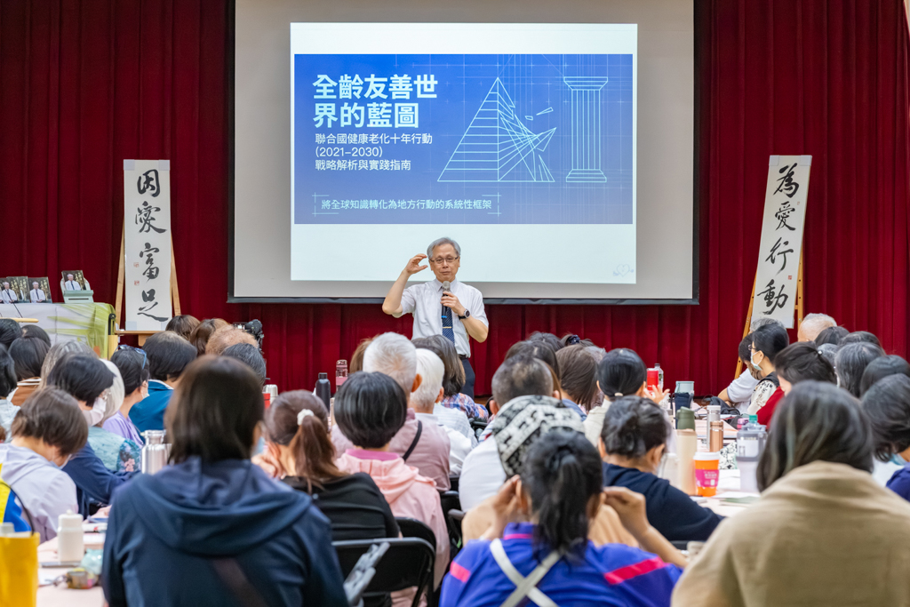 講座特別邀請前國民健康署署長王英偉教授擔任主講人,以「樂活善終」為核心主題,結合在地安老實踐與國際慈悲關懷社區經驗,深入探討如何在社區建立支持網絡,陪伴民眾走過人生最後一段旅程。其親切幽默的分享風格,使現場氣氛溫暖而深刻。