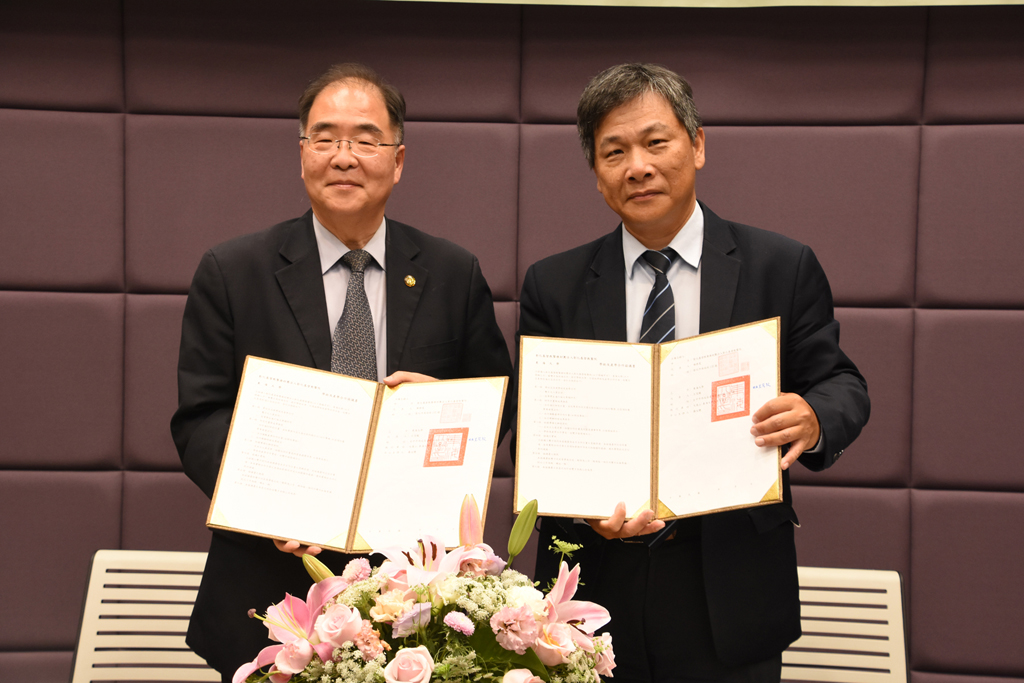 彰基副院長林慶雄醫師(右)及東海副校長王立志教授(左)簽署合約。