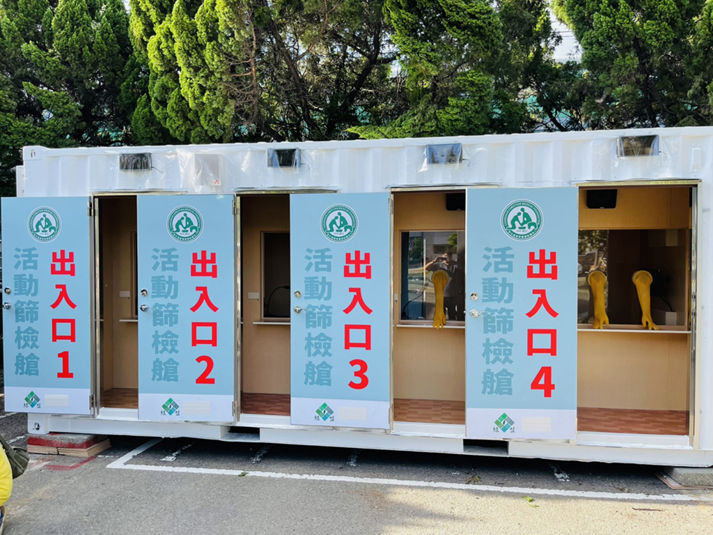 正壓活動篩檢艙可同時4個人進行採檢,艙內各採檢室有滅菌燈、空氣清淨劑,醫護人員能夠在安全環境下、精神輕鬆的進行採檢工作。