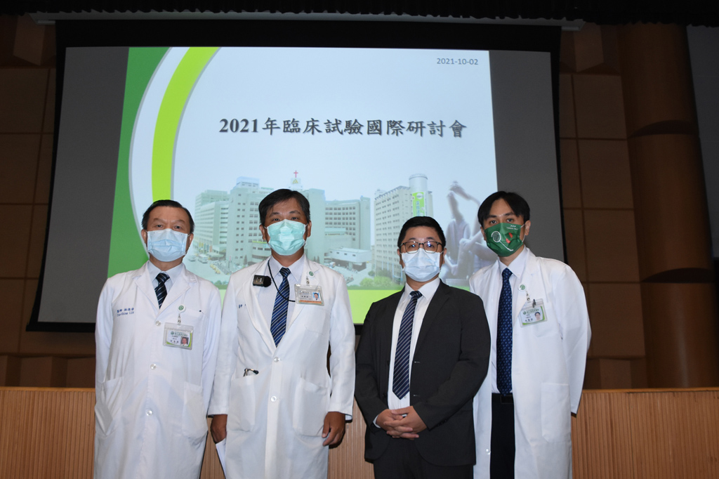 彰基醫學中心「2021年臨床試驗國際研討會」,邀請阿斯特捷利康(股)公司醫學學術處處長陳政斌(右二)擔任引言人。