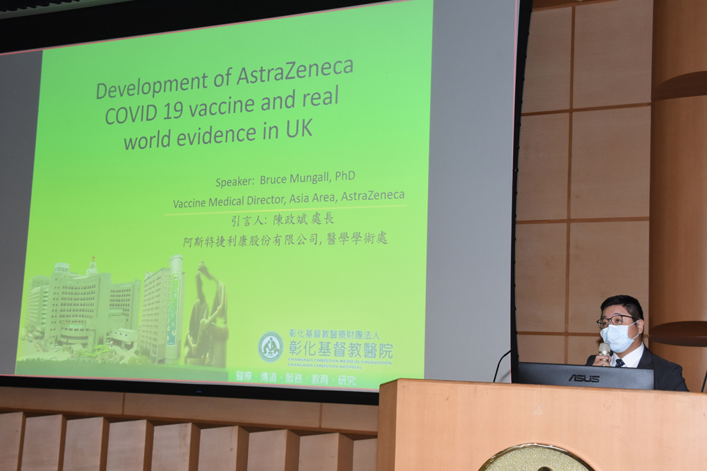 彰基臨床試驗中心每年至少規劃一場「優良藥品臨床試驗作業準則(GCP)」課程,為使參加人員有實際收益,不因為了學分而上課,在設計課程內容時,都設定一個主題,更邀請產官學各方面專家擔任課程講座。今年因COVID-19疫情肆虐,攸關COVID-19疫苗種種訊息,充斥生活周遭且不絕於耳,為使研究人員能有更深的認識與了解,以及與國際接軌的考量,此次「臨床試驗國際研討會」中,邀請阿斯特捷利康公司(AZ)國外疫苗專家 Bruce Mungall, PhD Vaccine Medical Director, Asia Area, AstraZeneca及國內高端疫苗公司專家戴伊晨處長,進行精采的演講;也因著COVID-19疫情影響實際執行面之運作,更邀請到美商默沙東藥廠黃麗榕執行總監,分享COVID-19對於臨床試驗執行實務之影響,希望對於日後在調整臨床試驗實際業務上有所幫助,由於近年國家也致力於發展新醫療器材之臨床試驗,所以在此次課程中,安排知名的審查專家-國立台北護理健康大學曾育裕教授,解說醫療器材臨床試驗法規。