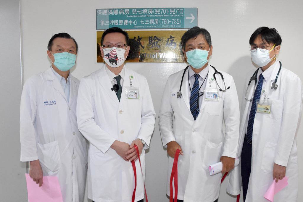 彰基院長陳穆寬教授(左二)於臨床試驗病房正式揭牌儀式中表示,根據官方資料,彰基一年有5400位左右的癌症的病人人數,在台灣排名第六位,所以真的需要成立「臨床試驗病房」。