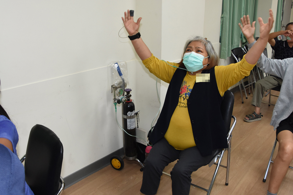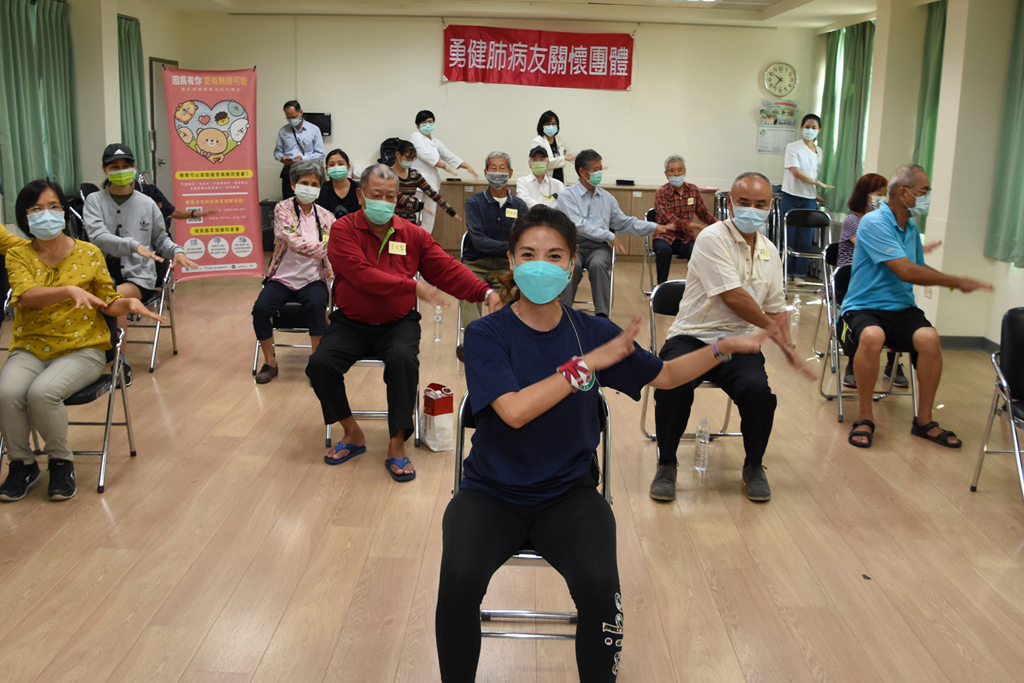 李靖薇老師(前)帶病友進行7分鐘活力健肺操。