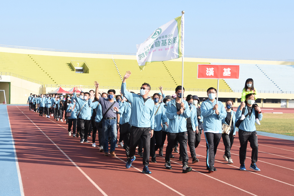 運動員宣誓代表–二林基督教醫院處長許志仁宣誓後,建國科技大學運動健康休閒系同學帶領所有人跳暖身操,彰基董事長與院長率領主管級幹部進行「彰基領航」健走。各項運動比賽:男女拔河、大隊接力;趣味競賽:推動彰基巨輪接力、搖搖闖關、加油打氣、球球過隧道、一分耕耘‧一分收穫、防疫變裝秀、超級快遞;親子趣味競賽:迴力車比賽、九宮格比賽等,隨即紛紛熱鬧登場。 參賽隊伍個個卯足全勁參加比賽,啦啦隊的加油聲響徹雲霄、不絕於耳,透過團體競賽方式,培養團隊精神及團隊默契,現場洋溢著歡樂氣氛;園遊會方面,各單位攤位設立琳瑯滿目,吃喝玩樂樣樣齊全,吸引大量人潮前往,熱鬧空前,彰基125週年院慶運動大會暨園遊會,下午二時在閉幕禱告中圓滿落幕。