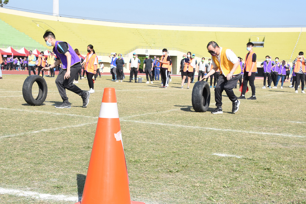 運動會進行「推動彰基巨輪接力」趣味競賽。
