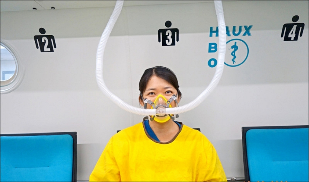 高壓氧對於治療嚴重高山肺水腫相當有效且快速;圖為示意圖。